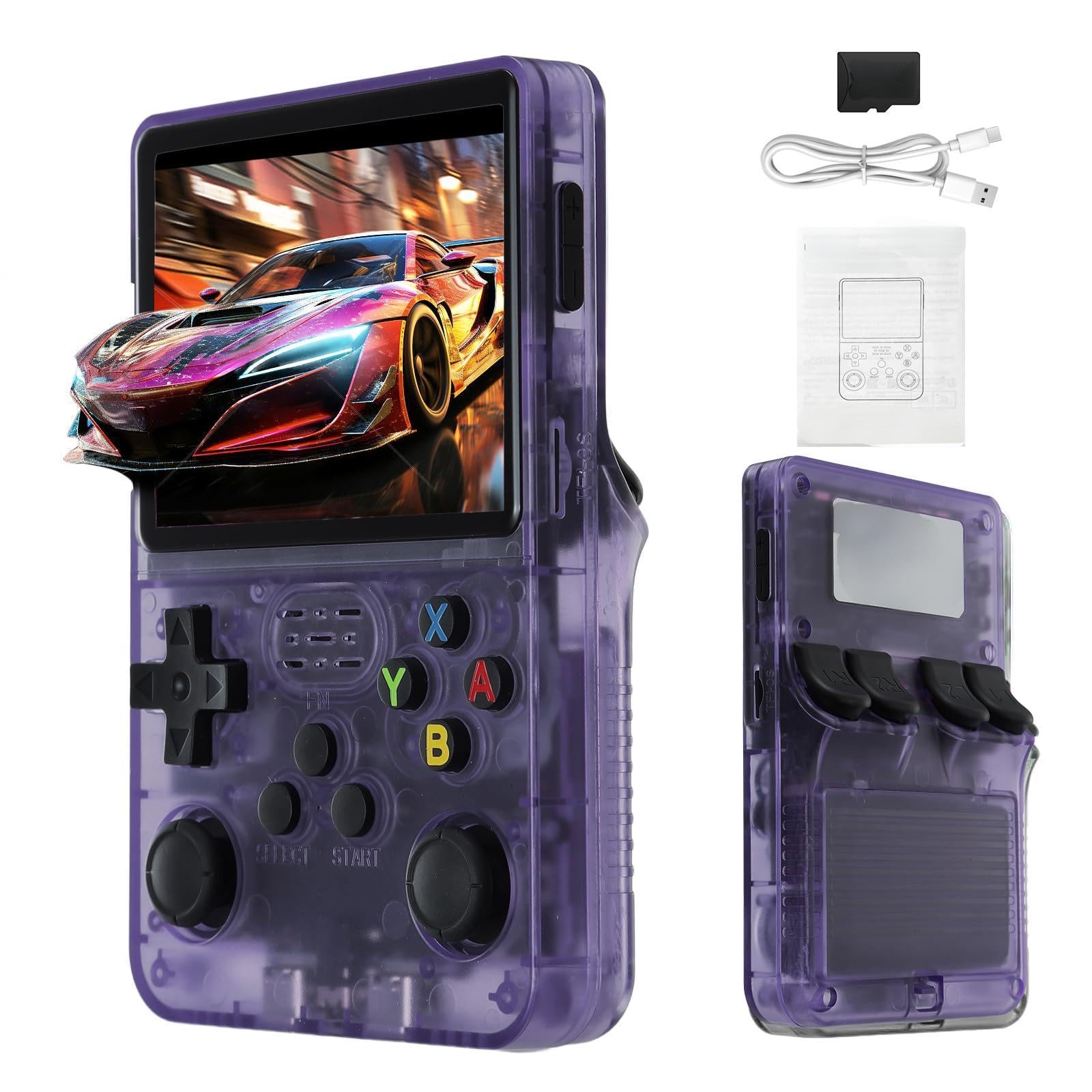 R36S Retro Handheld Game Console with 10000+ Classic Games,3.5-inch IPS Screen,Built-in Open Source Linux System,3500mAH Battery,Portable Mini Simulator Handheld Game Console(Purple)