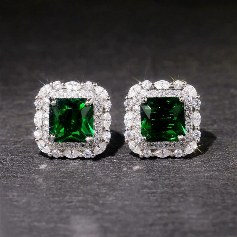 Vintage Green CZ Stud Earrings for Lady Dance Party Luxury Ear Accessories Anniversary Birthday Gift Women’s Jewelry