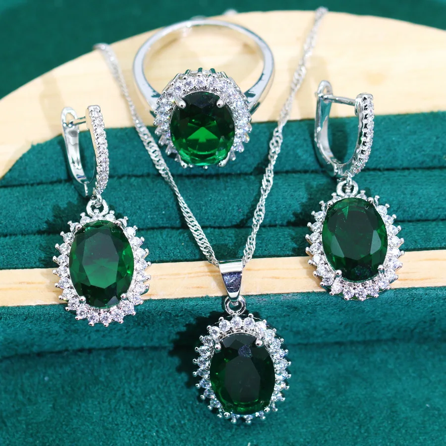 Silver Women’s Jewelry Set with Zircon Classic Style Wedding Bridal Earrings Necklace Pendant Ring for Party Dating Gift