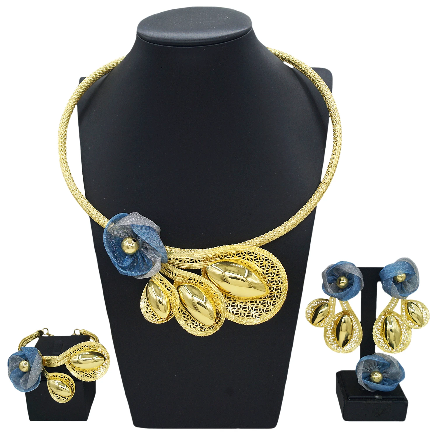 Zhuerrui New Elegant Fashion Women’s Jewelry Set Gauze Flowers Mysterious Elegant African Unique Bride Wedding Four-piece Set
