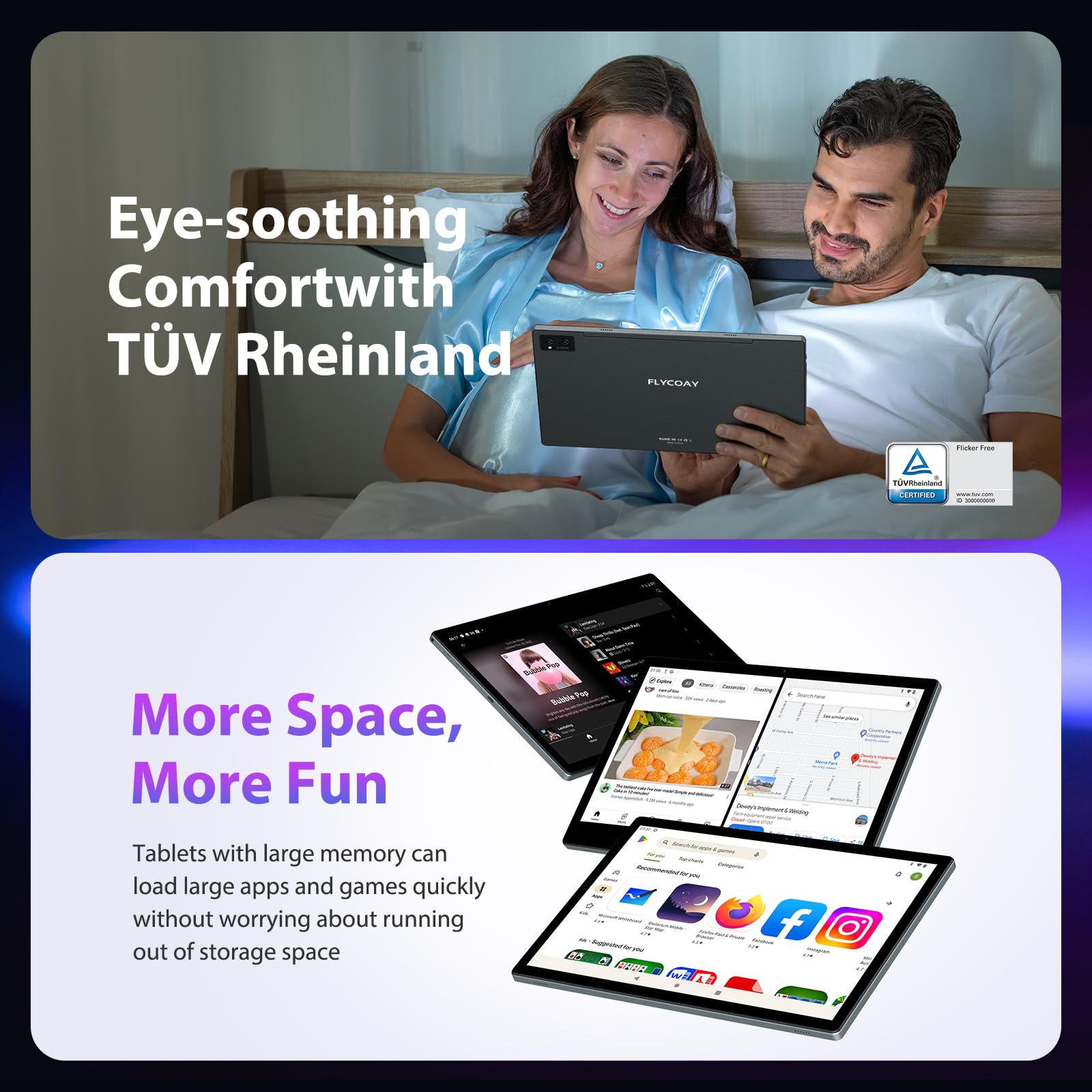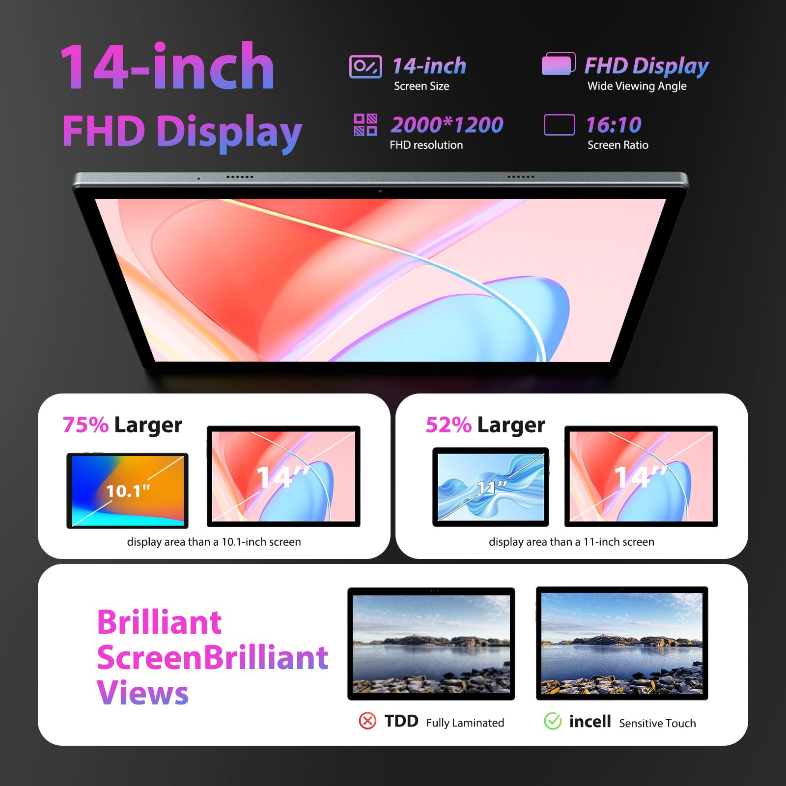 FLYCOAY Tablet 14 inch Android 14 Tablets, 256GB ROM(Expand to 2TB),36GB(12+24) RAM, Octa-Core 2.0GHz,11580mAh Battery, 2000 * 1200 FHD 4 Speakers, 4G LTE/5G WiFi, with Case,Pen,Earphone,Gray