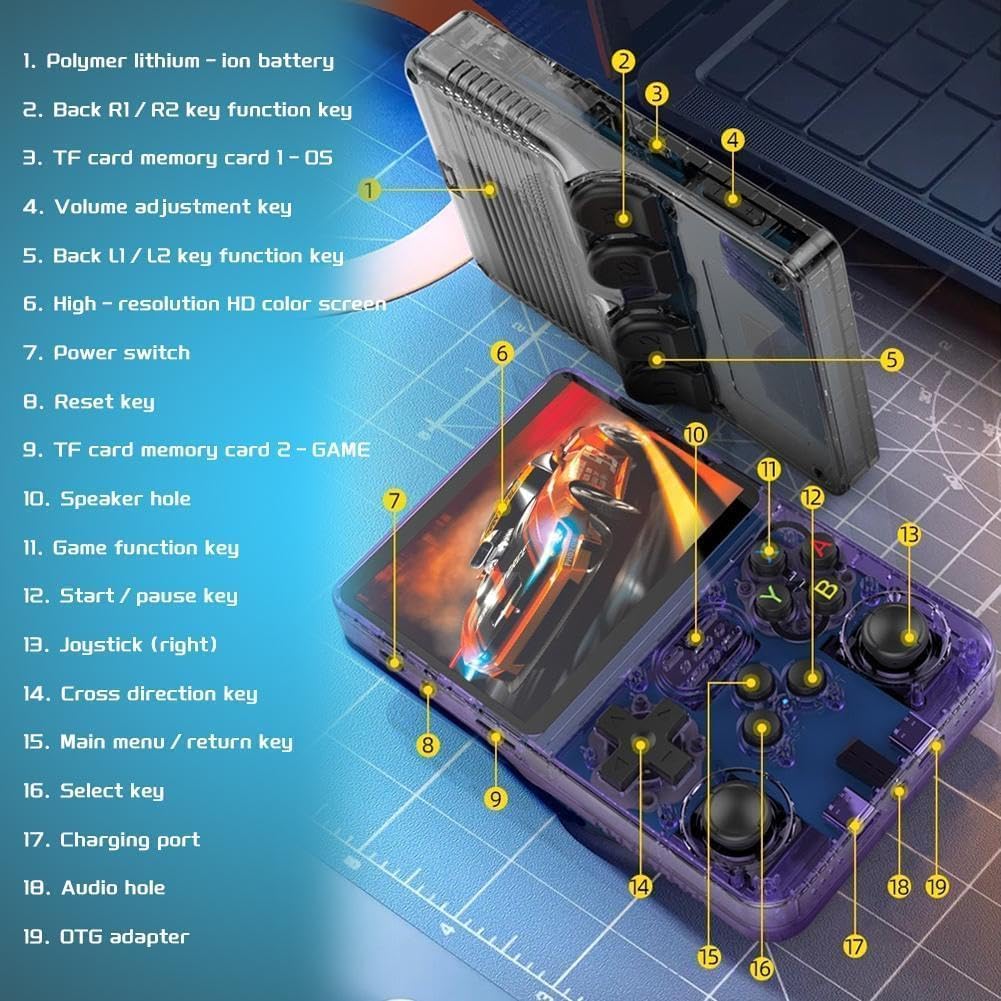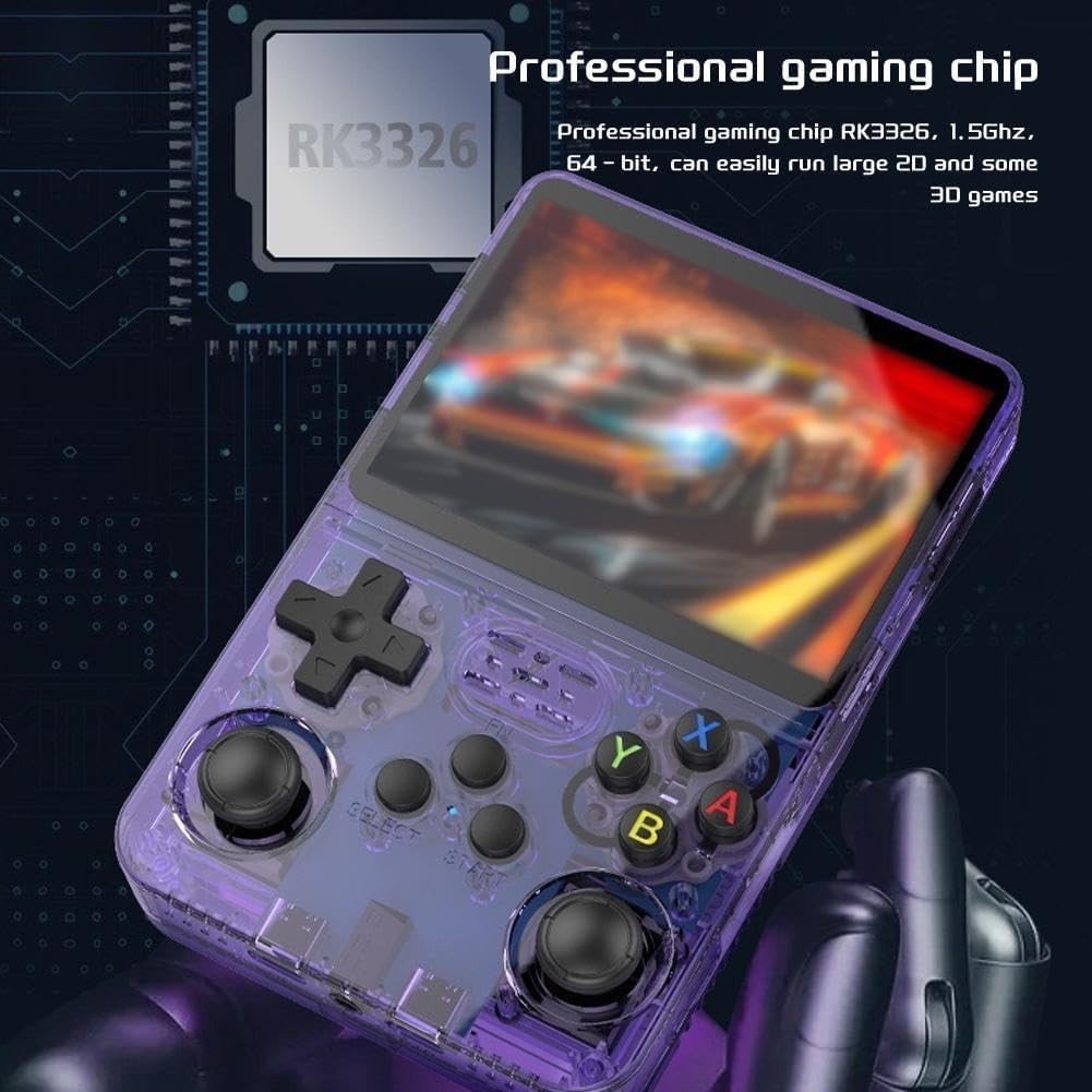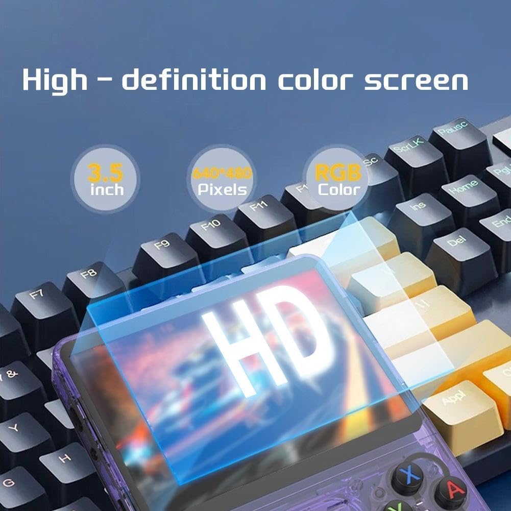 Keyboy Game Console R36S Retro Handheld Game Console with 64/128G Built-in 21000+ Classic Games, Open Source Linux System 3.5 Inch IPS Screen Portable Pocket Video Player (Purple Translucent 128G)