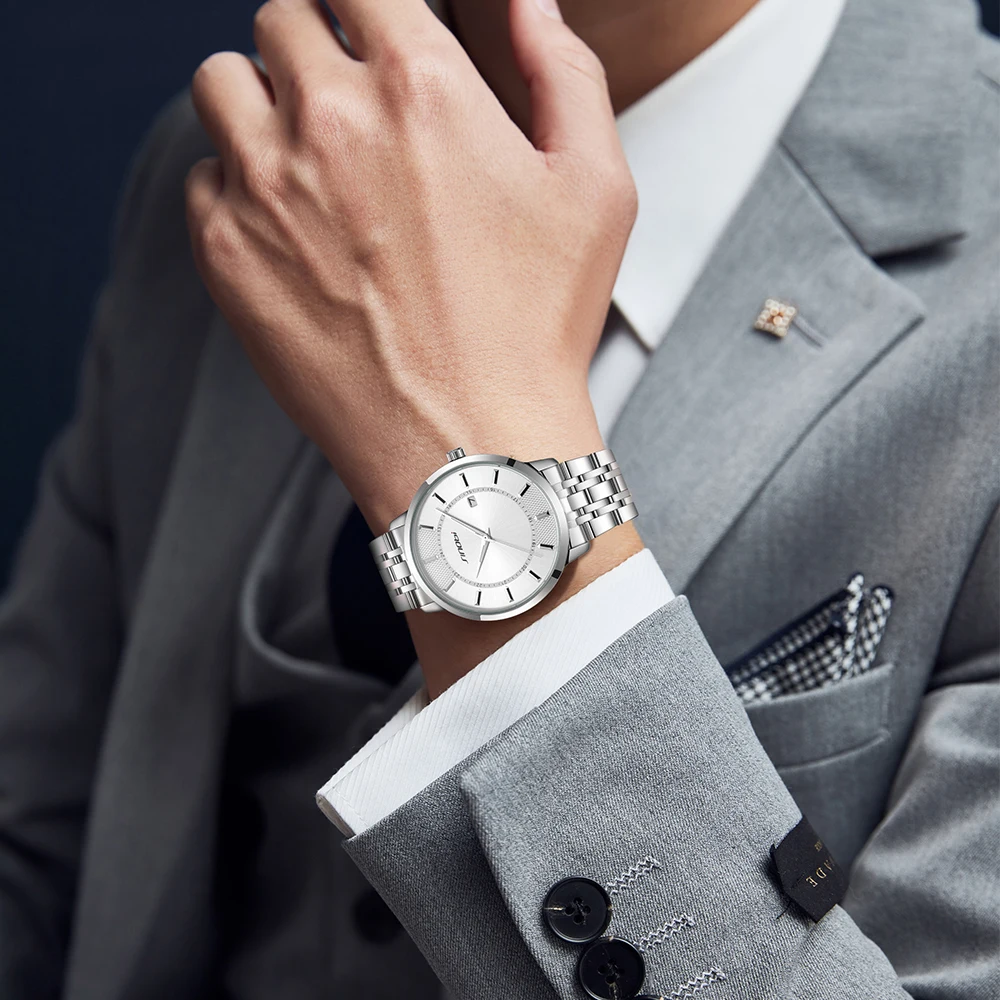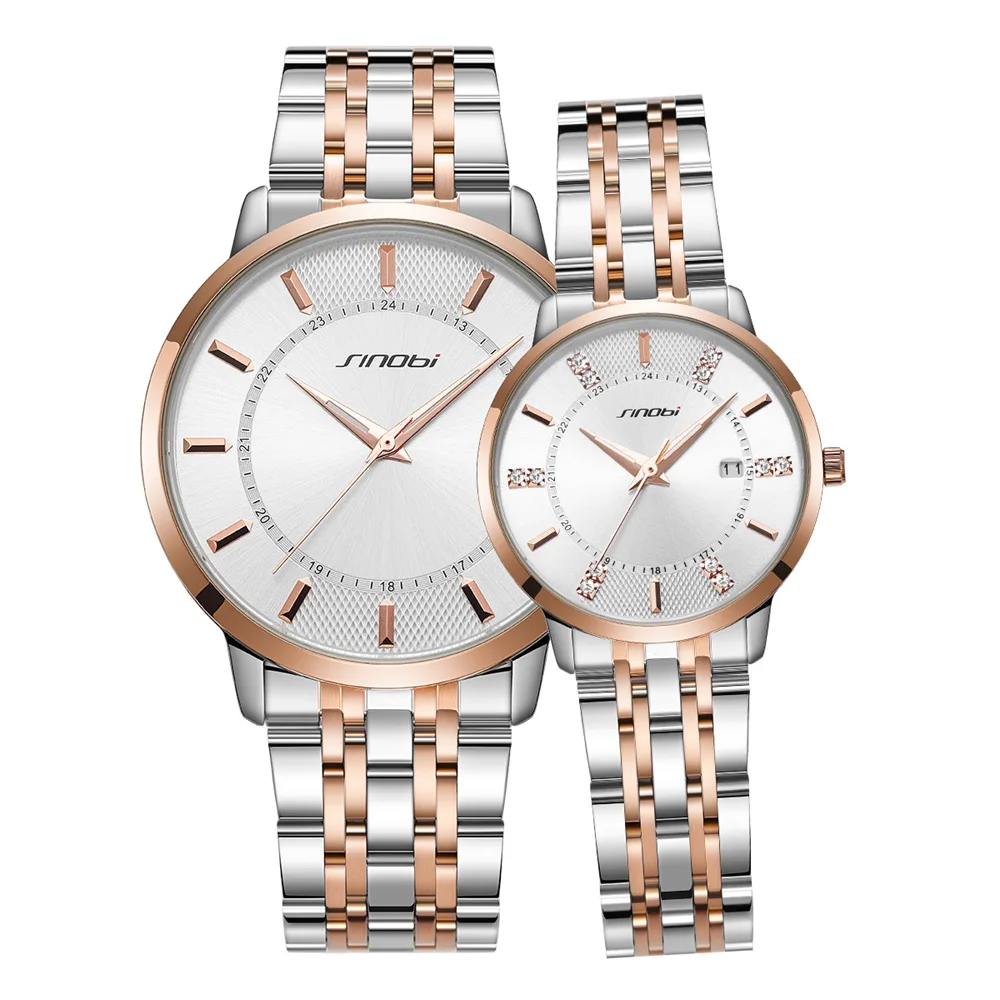 Luxury Fashion Alloy Couple Watch for Men and Women Waterproof Quartz Movement Stainless Steel Band Calendar Feature