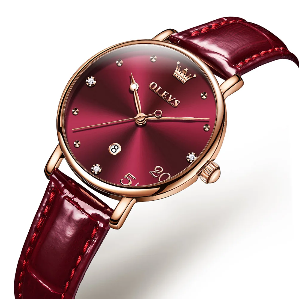 OLEVS 5523 Top Luxury Elegant Watch Women Waterproof Luminous Ladies Genuine Leather Strap Quartz Women’s Watches Girls Reloj