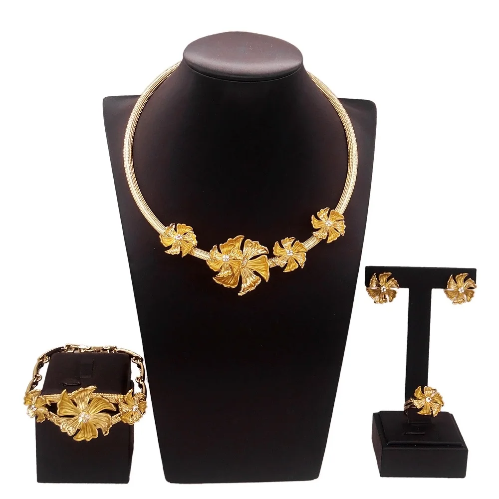 Zhuerrui Brass Gold Plated Women’s Jewelry Set New Fashion Delicate Flowers Dubai Italian Wedding Bridesmaid AccessoriesHA0201