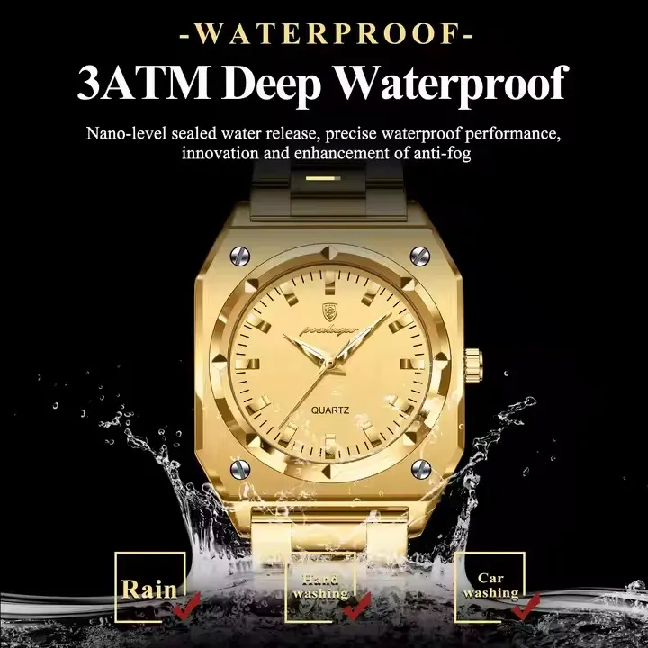 POEDAGAR 788 Luxury Gold Elegant Square Ladies Watch Waterproof Luminous Watch for Women Stainless Steel Quartz Women’s Watches