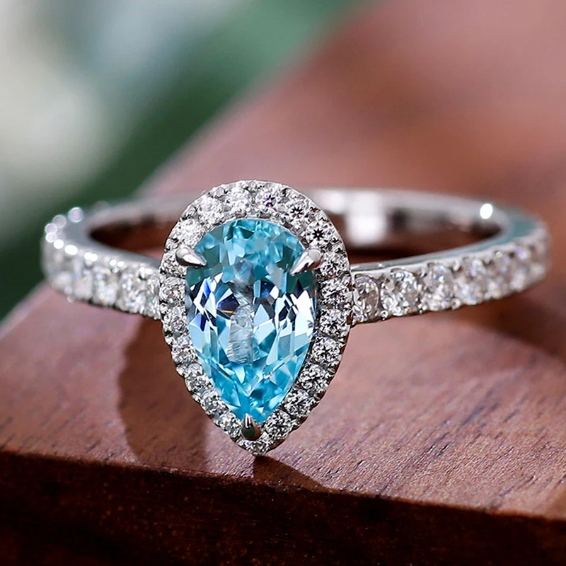 Solitaire Classic Design 18K Solid Gold Lab Grown Blue Diamond Ring Pear Cut IGI Certified Passes Diamond Tester Women’s Jewelry