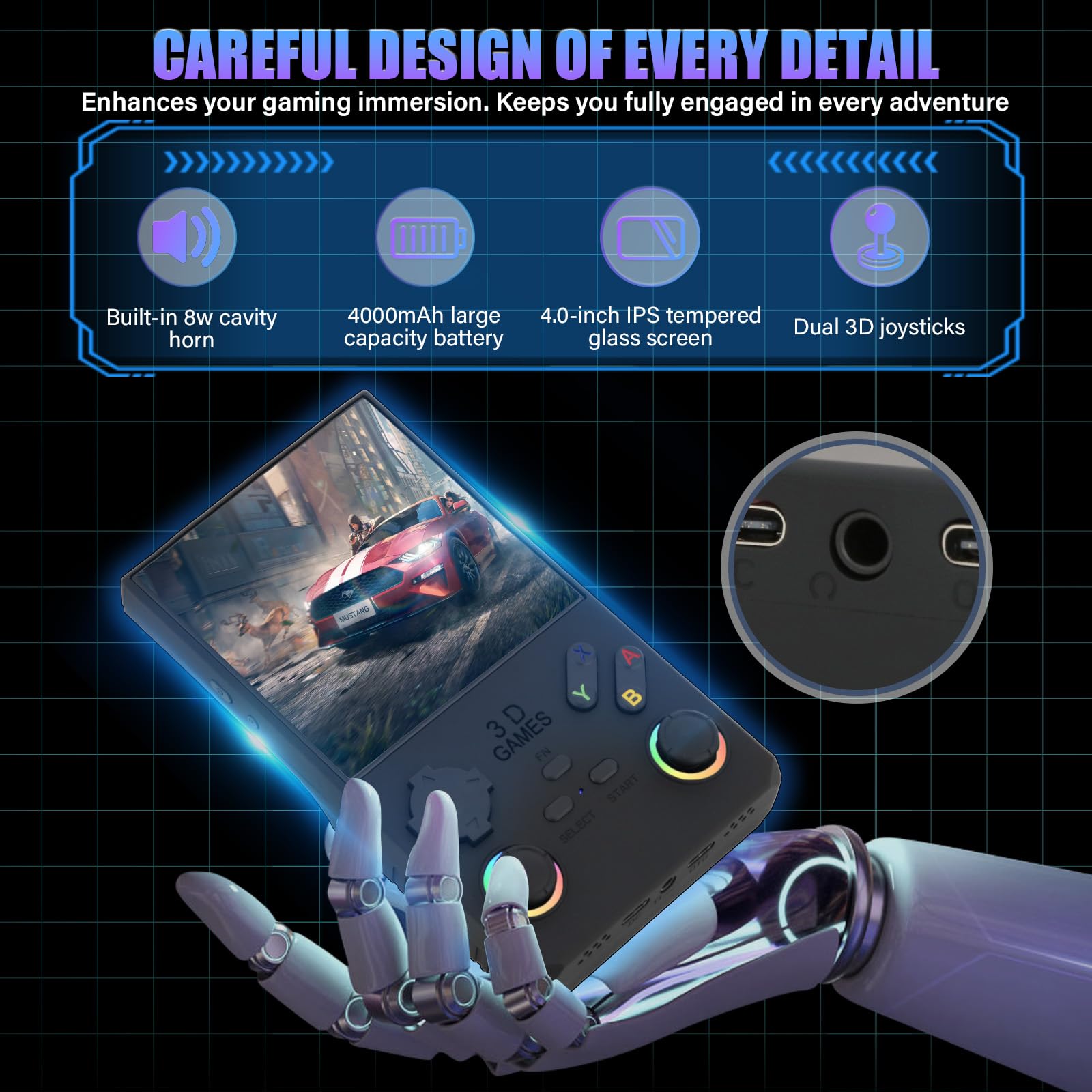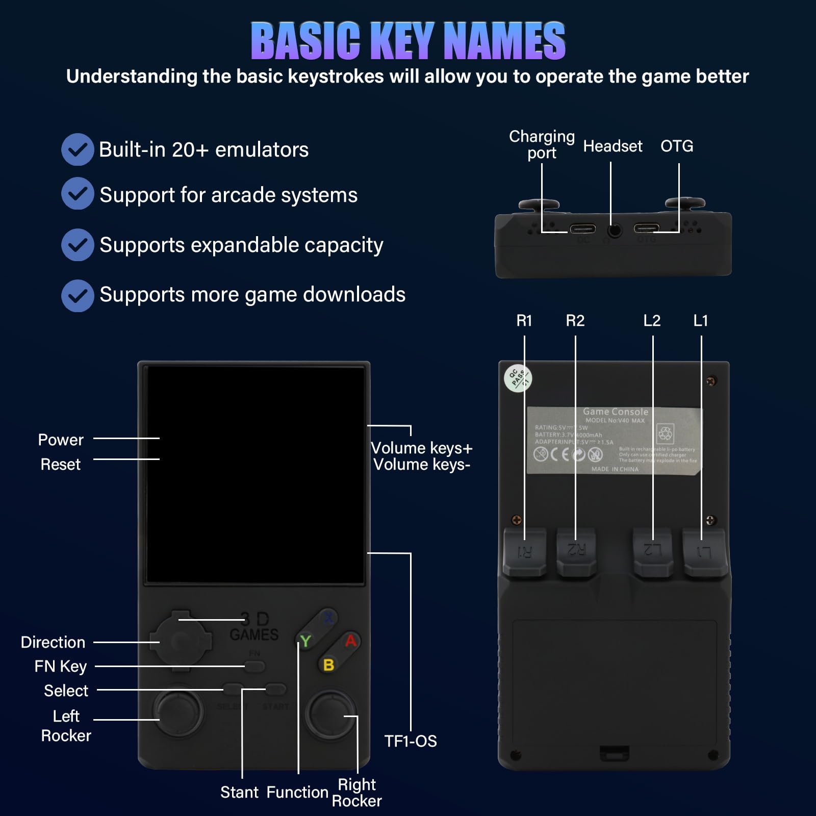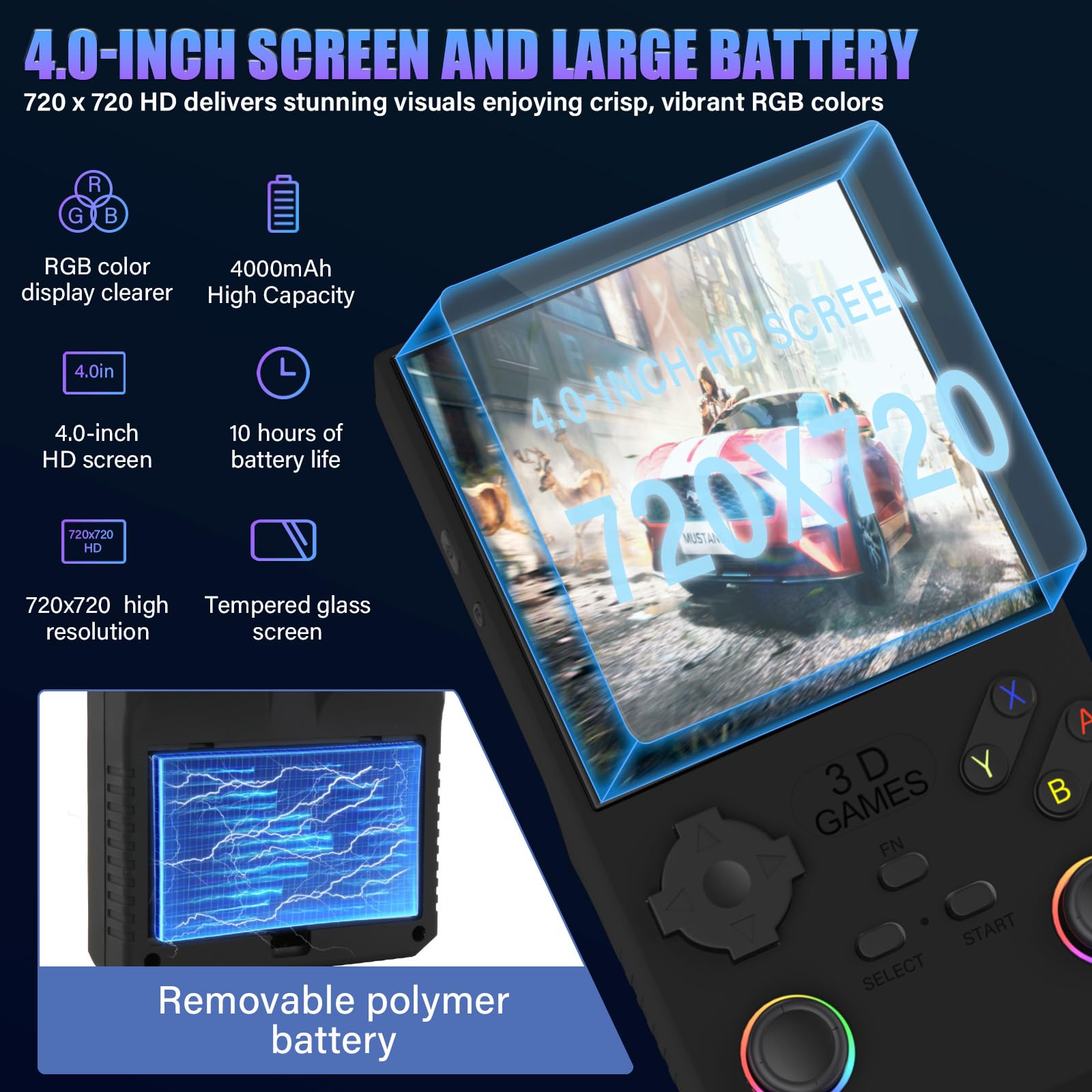 VELPAX V40 Retro Handheld Video Game Console, 40,000 Retro Games in 1 Game Console with Open Source Linux System, 256GB TF Card, 4″ IPS Screen and 4000mAh Battery(Black)