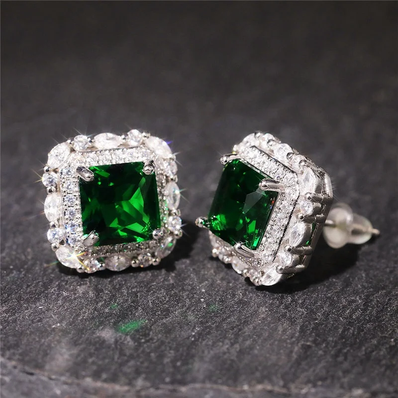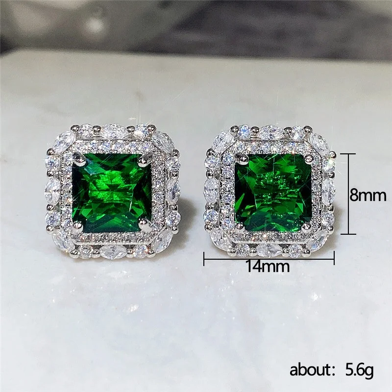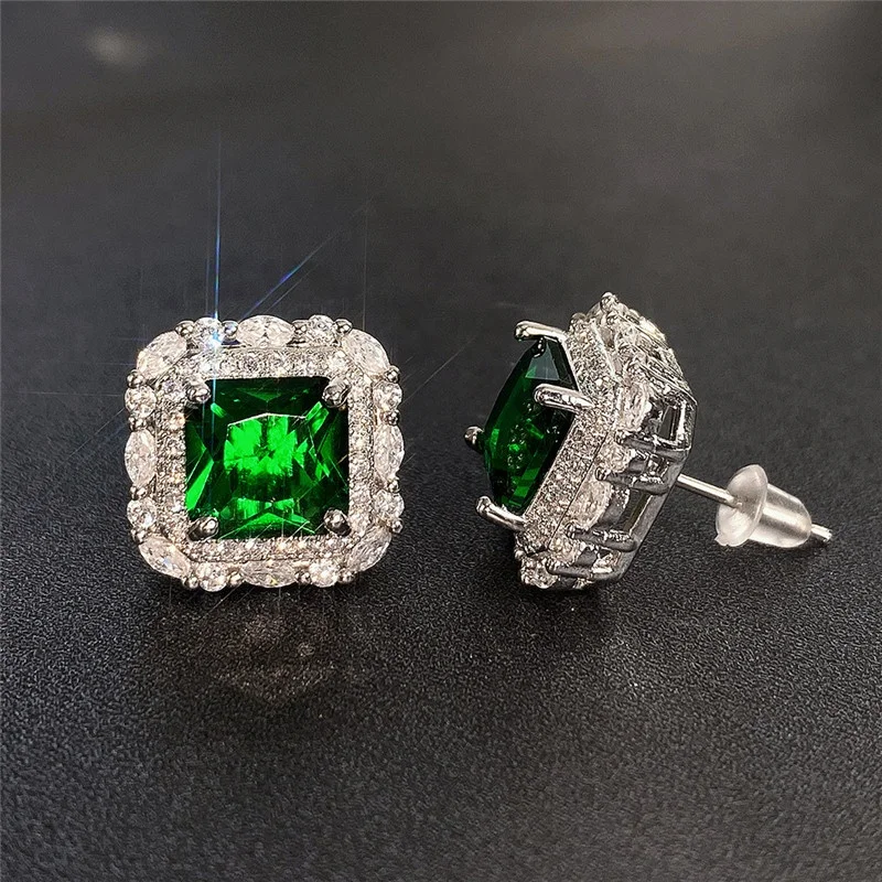 Vintage Green CZ Stud Earrings for Lady Dance Party Luxury Ear Accessories Anniversary Birthday Gift Women’s Jewelry