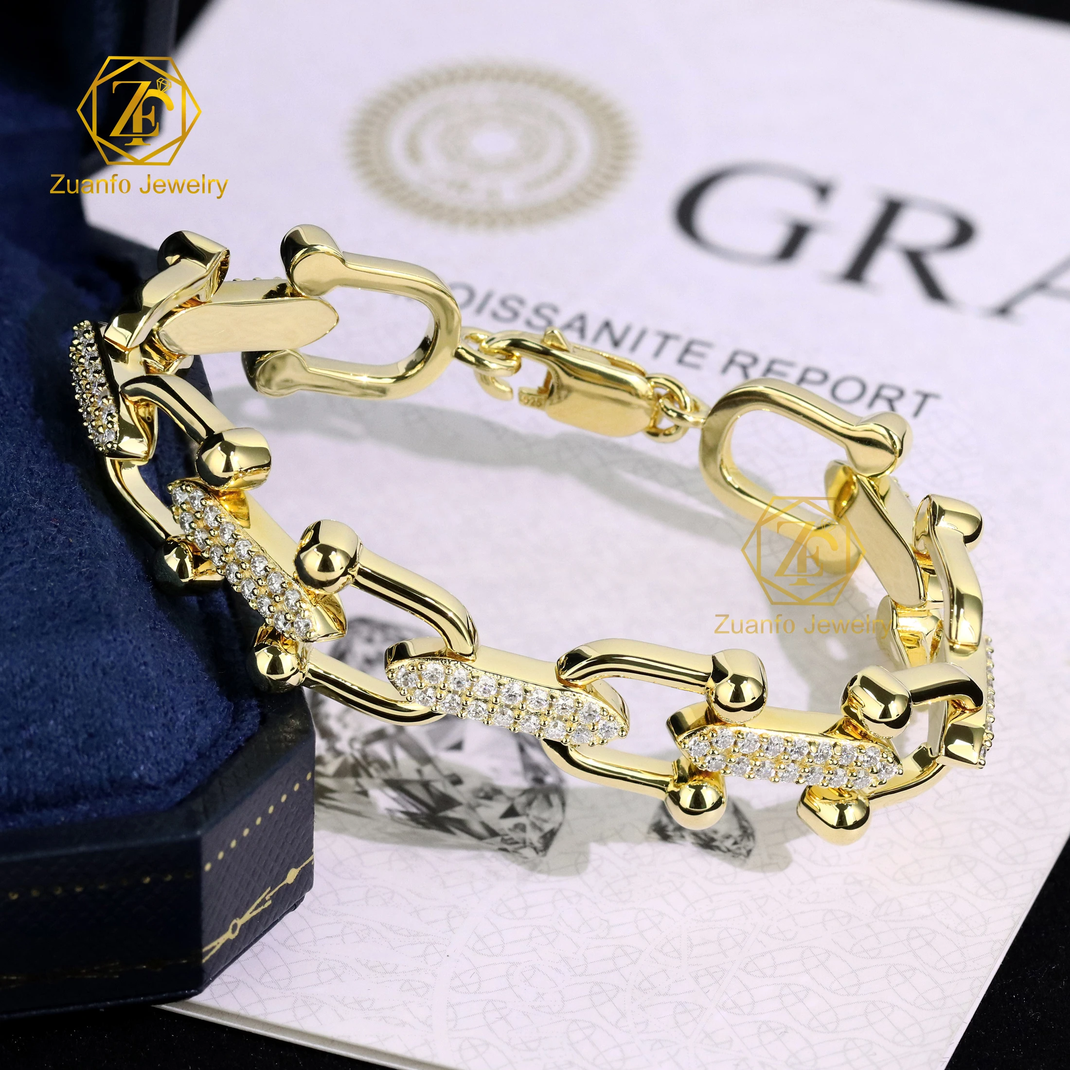 Luxury 925 Sterling Silver 18K Gold Plated Women’s Jewelry U Shaped Horseshoe Buckle Bamboo 6.5inch Moissanite Bracelet